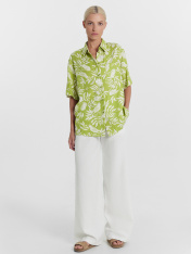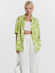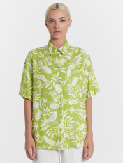 Новинка из коллекции "Дивный сад" — стильная рубашка женская из нежной вискозы. Оверсайз модель с центральной застежкой на пуговицы. На левой детали переда выполнен накладной карман. Горловина круглой формы с рубашечным воротником. Плечо спущено, пройма углублена. Рукав втачной, короткий. Низ рубашки прямой. Комфортный лаконичный вариант на каждый день для работы, учебы и повседневных дел. Дополнить можно низом из этой же коллекции на свой вкус. Широкий размерный ряд. Рекомендуем для создания гармоничных casual аутфитов в жаркий сезон года!