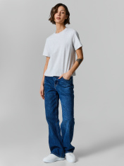 Базовая женская футболка прямого силуэта из трикотажной кулирки — это универсальная модель, которая легко впишется в повседневный гардероб. Слегка укороченная длина придает образу современность и делает футболку актуальной для сочетания с джинсами, брюками или юбками с завышенной талией. Круглая горловина оформлена широкой обтачкой из рибаны, что помогает сохранять форму и подчеркивает аккуратность исполнения. Широкие рукава добавляют расслабленности и комфорта, а широкие подгибки на рукавах и нижнем срезе подчеркивают качество пошива и делают изделие особенно долговечным. Трикотажная кулирка — мягкий, дышащий материал, приятный к телу и устойчивый к деформации, что делает футболку идеальной для ежедневной носки._x000D_ _x000D_