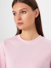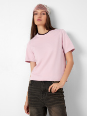 Базовая женская футболка прямого силуэта из трикотажной кулирки — это универсальная модель, которая легко впишется в повседневный гардероб. Слегка укороченная длина придает образу современность и делает футболку актуальной для сочетания с джинсами, брюками или юбками с завышенной талией. Круглая горловина оформлена широкой обтачкой из рибаны, что помогает сохранять форму и подчеркивает аккуратность исполнения. Широкие рукава добавляют расслабленности и комфорта, а широкие подгибки на рукавах и нижнем срезе подчеркивают качество пошива и делают изделие особенно долговечным. Трикотажная кулирка — мягкий, дышащий материал, приятный к телу и устойчивый к деформации, что делает футболку идеальной для ежедневной носки._x000D_ _x000D_