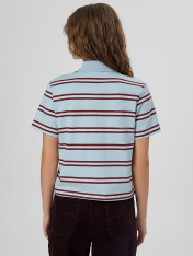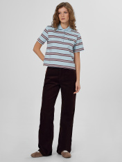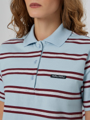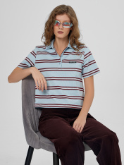 Женское поло в полоску — это классика с современным силуэтом. Прямой свободный крой и слегка спущенная линия плеча обеспечивают удобство и свободу движений. Короткие рукава идеально подходят для теплой погоды. <br>_x000D_ <br>_x000D_ Передняя планка с тремя пуговицами выполнена как одно целое из основной ткани, поэтому она не деформируется, выглядит аккуратно и держит форму. Особое внимание уделено комфорту: воротник и внутренние швы обработаны мягкой тесьмой, а низ изделия и рукавов аккуратно подогнуты. Эта поло станет универсальным элементом гардероба.