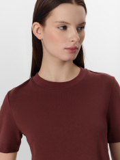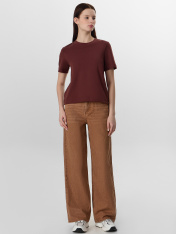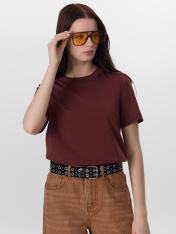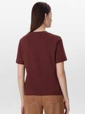Футболка прямого силуэта из трикотажного полотна интерлок._x000D_ Горловина круглой формы, широкая обтачка из рибаны. Шов горловину спинки окантован бейкой из основного полотна._x000D_ Рукав втачной, широкий. Футболка слегка укорочена._x000D_ Подгибки низа и рукава широкие._x000D_