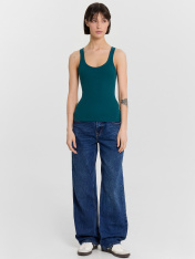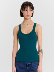 Топ женский прилегающего силуэта из трикотажного полотна рибана._x000D_ Горловина округлой формы. Срезы горловины и пройм окантованы широкими бейками _x000D_ из основного полотна. Спинка с распошитым средним швом._x000D_