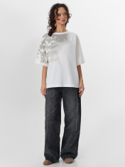 Футболка свободного кроя — отличный вариант для повседневной носки. Модель выполнена из натурального хлопка, который приятен к телу, позволяет коже дышать и не теряет формы после стирки. Свободный крой со спущенными плечами и круглой горловиной подходит для любого типа фигуры._x000D_ Удобная длина и продуманный крой позволяют носить футболку как навыпуск, так и заправленной в пояс, создавая разные варианты образов.<br>_x000D_ <br>_x000D_ Футболку легко сочетать с джинсами, шортами, юбками или спортивными брюками. Эта модель станет удобным и стильным решением для прогулок, встреч с друзьями или отдыха на природе._x000D_ _x000D_
