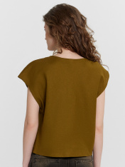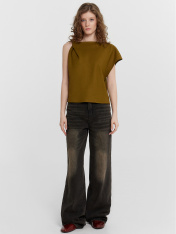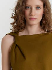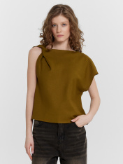 Эта женская блузка свободного силуэта — стильный и оригинальный элемент гардероба, идеально подходящий для создания современных и утонченных образов. Асимметричная форма горловины привносит в модель необычный акцент, делая ее запоминающейся и выразительной. Драпировка с перекрутом на правом плече добавляет изысканности, подчеркивая уникальный дизайн. Срезы горловины и проймы обработаны швом вподгибку, что обеспечивает аккуратный и долговечный внешний вид изделия. Слегка укороченный крой делает блузку особенно подходящей для сочетания с высокими юбками, брюками или джинсами, создавая стильные и гармоничные образы. Материал, состоящий из льна и района, сочетает в себе природную текстуру и мягкость. Лён обеспечивает воздухопроницаемость и комфорт, а район добавляет изделию гладкость и пластичность. Такой материал делает блузку практичной и приятной в носке, особенно в тёплое время года. Эта модель прекрасно подойдёт для повседневных и вечерних образов, подчеркивая индивидуальность и вкуссвоей обладательницы. _x000D_ _x000D_ _x000D_