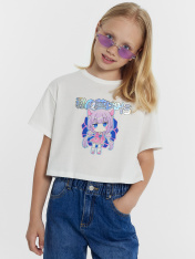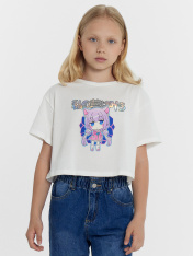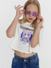 Укороченная футболка оверсайз для девочек из высококачественного 100% хлопка. Ткань мягкая, легкая и эластичная, не сковывает движения, комфортная в носке. Горловина круглая, рукава до локтя со спущенной линией плеча. Сохраняет свой насыщенный цвет и качество даже после многократных стирок. Обладает хорошей устойчивостью к выцветанию и отлично держит форму. Такая футболка подойдет для детского сада, активных игр, занятий спортом, прогулок и путешествий. Идеальна для шортиков, юбок или брюк с высокой посадкой. Отличный выбор для детей от Mark Formelle на каждый день!