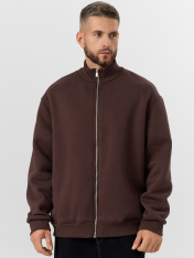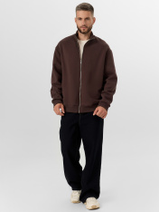Мужская толстовка прямого силуэта из трикотажного футера с подчесом — практичный и универсальный выбор для прохладных дней. Материал обладает мягкостью и умеренной плотностью, отлично удерживает тепло и приятно ощущается на теле. Округлая горловина с воротником из рибаны аккуратно оформлена и надежно фиксируется, сохраняя форму при носке. Спущенная линия плеча и длинные рукава с рибаной на манжетах обеспечивают комфорт и расслабленный силуэт, подходящий для любого типа фигуры. Центральная застежка на тесьму-молнию позволяет легко надевать и снимать изделие, а также добавляет практичности и динамичного настроения. Пояс из рибаны по низу завершает образ и фиксирует посадку, не давая ткани растягиваться. Толстовка легко комбинируется с джинсами, спортивными брюками или шортами, отлично подходит для города, загородных поездок или активного отдыха.