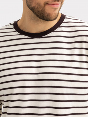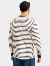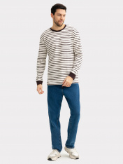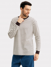 Стильный мужской лонгслив-тельняшка прямого, свободного силуэта, выполнен из высококачественного хлопка. Вырез круглый, классический, с контрастной окантовкой. Рукава длинные, свободные, с расширенными манжетами. Отличный универсальный лонгслив для casual-образов на каждый день. Дополнить такой лонг мужской в полоску легко и просто стильным низом. Его можно носить самостоятельно, как отдельный элемент или с другой верхней одеждой, создав при этом модный многослойный аутфит. Материал изделия износостойкий, мягкий и приятный к телу, не линяет и не выцветает при множественных стирках. Если вы в поиске базовой универсальной вещи, то этот лонг-тельняшка - отличный вариант!