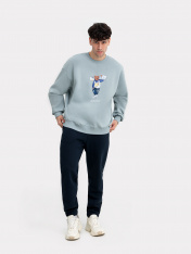 Стильный мужской свитшот изготовлен из футера с подчесом. Модель прямого силуэта, перед и спинка цельнокроенные. Горловина округлой формы из рибаны. Рукава втачные длинные. Линия плеча слегка спущена. По низу рукавов и джемпера отрезные манжеты и пояс из рибаны. Дизайн изделия прост и лаконичен, что позволяет легко комбинировать его с различной одеждой. Широкий размерный и цветовой ряд. Подойдет в качестве повседневного варианта. Не упустите возможность обновить свой гардероб с помощью этого мужского свитшота!