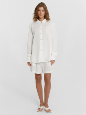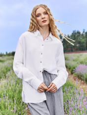 Женская рубашка прямого силуэта из сатиновой ткани — это элегантная и универсальная модель, которая подойдет как для делового, так и для повседневного гардероба. Сатин придает изделию мягкость, обеспечивая приятные тактильные ощущения и комфорт в течение дня. Отложной воротник и центральная застежка на пуговицы придают рубашке классический и аккуратный вид. Слегка спущенное плечо и длинные рукава с манжетами и разрезами добавляют образу легкой расслабленности, сохраняя при этом утонченность. Удлиненный крой с округлым низом визуально вытягивает силуэт и позволяет носить рубашку как навыпуск, так и заправленной. Эта модель легко сочетается с брюками, юбками или джинсами, позволяя создавать как строгие, так и более свободные образы. Отличныйвыбор для тех, кто ценит комфорт, стиль и универсальность в каждой детали.