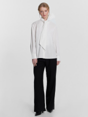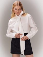 Женская блузка с воротником-бантом добавит вашему гардеробу нотку изысканности и оригинальности. Модель прямого кроя с длинными рукавами и застежкой на пуговицы спереди идеально подходит для создания стильных и утонченных образов. Изделие выполнено из нежного хлопка, который отличается мягкостью и дышащими свойствами. Натуральный материал прекрасно пропускает воздух, обеспечивая комфорт на протяжении всего дня. Хлопок также гипоаллергенен, что делает его идеальным выбором для чувствительной кожи. Сочетайте эту блузку с разными элементами гардероба, чтобы создавать неповторимые и стильные образы для любого случая. Ощутите комфорт и утонченную элегантность с этой великолепной блузкой!