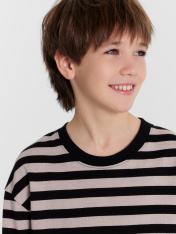 Лонгслив для мальчиков с длинными рукавами, выполнен из высококачественного хлопка. Силуэт прямой, спинка немного длиннее переда. Изделие обладает отменными гигиеническими свойствами, воздухопроницаемостью и гигроскопичностью. Детский джемпер имеет высокую прочность, сильно не мнется, хорошо сохраняет форму, устойчив к износу. Ткань абсолютно гипоаллергенна, что немаловажно для детской одежды. Джемпер для мальчиков в полоску — отличный вариант для того, чтобы носить его в садик, школу, на прогулку, взять с собой в путешествие. К нему без проблем можно подобрать стильный низ из линейки базовой детской одежды. Цветовой ряд широкий. Рекомендуем лонгслив для создания повседневных стильных образов для вашего ребенка!