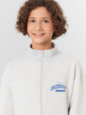 Представляем вашему вниманию стильную толстовку для мальчиков. Этот практичный и комфортный элемент гардероба станет незаменимым спутником в любое время года. Модель выполнена из футера без подчеса, со спущенным плечом. По низу рукавов - отрезные манжеты из рибаны. Отрезной пояс также выполнен из рибаны, что обеспечивает плотное и комфортное прилегание к фигуре. Застежка-молния позволяет легко надевать и снимать толстовку. В составе изделия - высококачественный хлопок. Универсальный дизайн позволяет сочетать ее с различными элементами гардероба, создавая стильные повседневные образы. Толстовка станет отличным вариантом как для занятий спортом, так и для прогулок с друзьями. Рекомендуем!