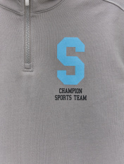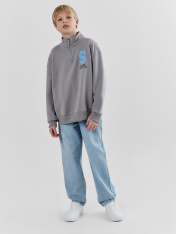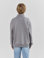 Эта толстовка для мальчиков — стильный и удобный вариант на каждый день. Прямой силуэт обеспечивает комфортную посадку, а округлая горловина с воротником-стойкой из основного полотна добавляет аккуратности и завершенности дизайну. Длинные рукава со слегка спущенной линией плеча придают изделию расслабленный и современный вид. Манжеты на рукавах, обеспечивают удобное прилегание, а центральная застежка на молнию делает толстовку практичной и функциональной. Отрезной пояс из рибаны по нижнему краюдобавляет устойчивость форме и комфорт в носке. Изделие изготовлено из хлопкового футера без подчеса, что делает его мягким, воздухопроницаемым и идеальным для повседневных активностей. Прекрасный выбор для прогулок, школы или отдыха, дарящий комфорт и стиль в каждой детали! _x000D_ _x000D_ _x000D_ _x000D_