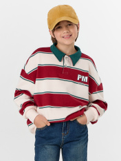 Свитшот для мальчика — это стильная и комфортная модель для повседневной носки. Свободный силуэт со спущенным плечом и длинными рукавами обеспечивает полную свободу движений, а отрезные манжеты из рибаны мягко фиксируют запястья, сохраняя тепло. Округлая горловина с рубашечным воротником и застежкой на пуговицы добавляет образу аккуратности, напоминая классический поло, но с уютом свитшота.<br>_x000D_ <br>_x000D_ Отрезной пояс из рибаны по низу изделия обеспечивает удобную посадку, не стягивая талию. Если вы хотите купить свитшот для мальчиков, который сочетает качественные материалы, продуманный крой и стильный дизайн, эта модель станет отличным выбором. Свитшот для мальчика из мягкого хлопка гарантирует комфорт в течение всего дня, легко сочетаясь сджинсами, брюками или шортами. Это идеальный вариант для активных детей, ценящих удобство и яркие детали в одежде._x000D_