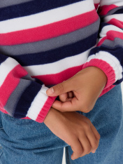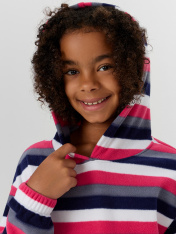 Укороченный анорак из флиса. Силуэт свободный, пройма спущена. Рукава длинные, втачные. Горловина круглой формы, втачан капюшон. По низу изделия и низу рукавов застрочена эластичная тесьма.