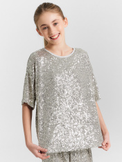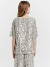 Блузка свободного силуэта. Перед и спинка цельнокроеные. Горловиа кругло формы, обработана сеткой. Рукав втачной короткий, слека спущен. Подкладка из трикотажного кулирного полотна. _x000D_ _x000D_