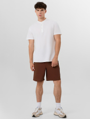 Эти мужские шорты — универсальный элемент весенне-летнего гардероба, обеспечивающий комфорт и стиль. Прямой крой со средней посадкой идеально подходит для повседневных образов, даря свободу движений и удобную посадку. Эластичный пояс на кулиске позволяет легко регулировать объем, обеспечивая максимальный комфорт. Спереди имитация гульфика добавляет классический акцент, придавая модели завершенный вид. Боковые карманы делают шорты функциональными, предоставляя удобное место для хранения мелочей.Нижние срезы обработаны швом вподгибку, что придаёт изделию аккуратность и долговечность. Шорты выполнены из хлопка с добавлением спандекса, благодаря чему они остаются мягкими, прочными и слегка эластичными, обеспечивая комфорт в течение всего дня.Практичный и стильный выбор для теплого сезона!_x000D_ _x000D_