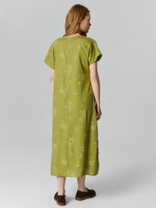 Домашнее платье прямого силуэта длиной макси — это пример элегантного минимализма и комфорта. V-образная горловина добавляет изысканности и подчеркивает женственность, а короткие рукава обеспечивают свободу движений и удобство в носке. Декоративные разрезы по боковым швам придают изделию оригинальность и легкость, делая его стильным акцентом в домашнем гардеробе. Низ обработан швом в подгибку, что гарантирует аккуратный вид и долговечность. Платье выполнено из смеси натурального льна и района, обеспечивающего мягкость и отличные дышащие свойства. Такой выбор ткани идеально подходит для комфортного отдыха дома, особенно в тёплое время года. Это платье станет универсальным вариантом для вашего уюта. Рекомендуем!_x000D_ _x000D_