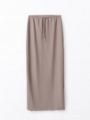 Юбка полуприлегающая, прямая. Пояс обработан вподгибку с тесьмой внутри из основного полотна и внутр резины 15RV. Низ обработан на микрооверлоке.