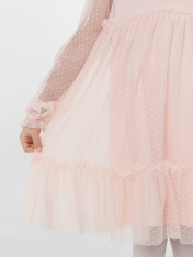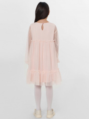 Нарядное платье для девочки из нежной сеточки – идеальный выбор для праздничных мероприятий, утренников и других торжественных случаев. Круглый вырез горловины и длинные рукава придают модели элегантность и утонченность. На спинке находится застежка-пуговица, что добавляет изысканный акцент. Подкладка платья выполнена из нежной хлопковой кулирки, которая обеспечивает комфорт и мягкость на протяжении всего дня. Кулирка – это материал, который дышит, позволяет коже ощущать приятную прохладу и предотвращает раздражение, что особенно важно для детской кожи. Это платье не только красиво, но и функционально, оно подарит вашей малышке ощущение праздника и комфорта. Рекомендуем для создания волшебного и нарядного образа!_x000D_ _x000D_ _x000D_ _x000D_ _x000D_