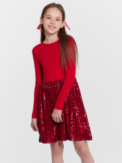 Создайте волшебный новогодний образ для вашей маленькой принцессы с этим нарядным платьем для девочек! Оно идеально подходит для праздников и торжественных мероприятий, привлекая внимание своим изысканным дизайном. Юбка из сетки, украшенная сверкающими пайетками, добавляет блеска и делает каждое движение ослепительным. Круглая горловина и длинные рукава придают платью элегантный и утонченный вид. А подкладка из трикотажного кулирного полотна обеспечивает комфорт и приятные ощущения на коже. Этоплатье станет любимым элементом гардероба для особенных моментов. Рекомендуем! _x000D_ _x000D_ _x000D_ _x000D_
