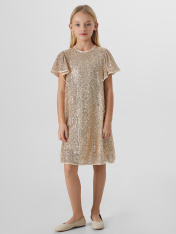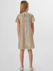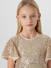 Платье с пайетками — это праздник в каждой детали. Его силуэт мягко облегает фигуру и расширяется книзу, создавая изящный А-силуэт. Платье полностью покрыто переливающимися пайетками, которые играют светом при каждом движении._x000D_ Верх платья выполнениз полиэстера с добавлением эластана, что обеспечивает материалу легкое растяжение, упругость и помогает пайеткам надежно держаться. Подкладка из хлопка с эластаном гарантирует воздухопроницаемость, мягкость и комфорт в течение всего дня, позволяя свободно двигаться и танцевать. <br>_x000D_ <br>_x000D_ Это платье станет идеальным нарядом для первого выпускного, яркого дня рождения или волшебного новогоднего утренника. _x000D_ <br>В нём ваша принцесса превратится в главную героиню праздника, а сияющий образ и лёгкость кроя подарят ей радость и уверенность, которые запомнятся навсегда._x000D_ _x000D_