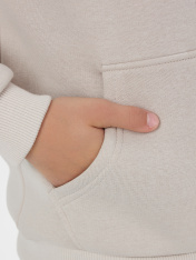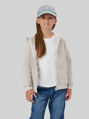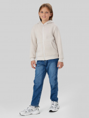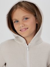 Жакет из трикотажного футера с теплым подчесом. Спущенная линия плеча гарантирует свободу движений. Прямой свободный силуэт, уютный капюшон, длинные рукава на манжетах, удобный карман-кенгуру, центральная застежка на молнию – эта модель наверняка понравится вашей девочке. _x000D_