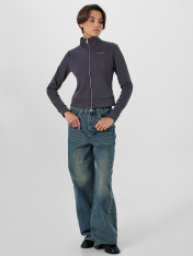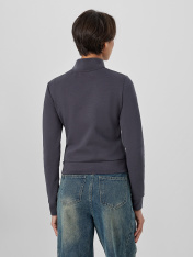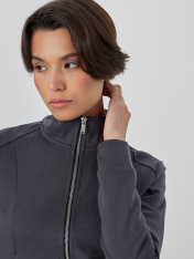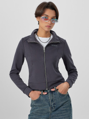 Женская толстовка прилегающего силуэта в насыщенном металлическом сером цвете с мотивирующей надписью «Впечатляй» создана для тех, кто ценит современный крой и внимание к деталям. Модель оснащена удобной застежкой-молнией по центру, которая позволяет легко регулировать степень открытости и создавать многослойные образы. <br>_x000D_ <br>_x000D_ Элегантный воротник-стойка мягко обрамляет шею, добавляя образу собранности и защищая от ветра. Практичность модели подчеркивают аккуратные карманы, интегрированные в боковые швы, где можно разместить необходимые мелочи. _x000D_ Благодаря составу с добавлением полиэстера толстовка надолго сохраняет свою форму и цвет, не теряя презентабельного вида после множества стирок. <br>_x000D_ <br>_x000D_ Эта универсальная модель станет ключевой вещью в вашем гардеробе, идеально подходя для прогулок, встреч с друзьями или повседневной носки, легко сочетаясь с джинсами, брюками и юбками._x000D_