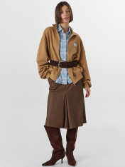 Женская толстовка на молнии с надписью «Момент» — идеальный спутник для ваших самых ярких дней. Свободный оверсайз крой и воротник-стойка, облегающий шею, надежно защищает от ветра и прохлады, даря ощущение комфорта. Длинные рукава с эластичными манжетами и поясом из рибаны мягко облегают фигуру, подчеркивая стильный силуэт._x000D_ Металлическая молния и удобные боковые карманы с нежной подкладкой делают каждую деталь продуманной до мелочей. Толстовка выполнена из хлопка — натуральный материал обеспечивает коже идеальный микроклимат, мягко согревая в прохладу и оставаясь приятным к телу даже при длительной носке. <br>_x000D_ <br>_x000D_ Толстовка легко сочетается с любой одеждой, создавая гармоничные образы для прогулок, встреч с друзьями или отдыха на природе. В этой толстовке вы будете чувствовать себя легко и уверенно в каждом моменте._x000D_
