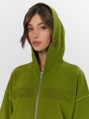 Толстовка на молнии станет вашим любимым выбором для прогулок и отдыха. Ее главная особенность — бесшовная конструкция спины и переда, что обеспечивает особую мягкость и полную свободу движений без скованности в плечах и талии. Длинные спущенные рукава и удобный капюшон создают законченный образ, который защитит от прохлады.<br>_x000D_ <br>_x000D_ Хлопок обладает превосходными гигиеническими свойствами: он гипоаллергенен, позволяет коже дышать и обеспечивает комфорт при длительной носке. Плотная хлопковая ткань гарантирует уют и сохраняет тепло, становясь идеальным выбором для создания многослойных образов в холодную погоду. _x000D_ Мягкие манжеты из рибаны по низу изделия и на рукавах обеспечивают аккуратную посадку. Центральная застежка-молния и накладныекарманы добавляют практичности в повседневной носке. Особый шарм толстовке придают аккуратные швы, которые подчеркивают современный дизайн. <br>_x000D_ <br>_x000D_ Универсальная модель, в которой вы будете чувствовать себя уютно и стильно._x000D_
