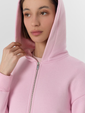 Женская толстовка на молнии — это уют и практичный стиль для прохладных дней. Она выполнена из мягкого трикотажа, который обеспечивает тепло, комфорт и хорошо держит форму._x000D_ <br>Свободный крой со спущенным плечом и длинными рукавами создаёт расслабленный силуэт. Капюшон, боковые карманы с мягкой подкладкой для хранения мелочей и застежка на молнию, которую можно легко расстегнуть до комфортного уровня, добавляют повседневного удобства и практичности. Эластичные манжеты и пояс из рибаны помогаютсохранять тепло и обеспечивают аккуратную посадку.<br>_x000D_ <br>_x000D_ Состав из хлопка и полиэстера обеспечивает баланс натуральности и износостойкости: ткань хорошо дышит, не мнется и легко стирается. _x000D_ <br>Эта толстовка станет отличным выбором для прогулок, занятий спортом или повседневной носки, легко сочетаясь с джинсами, легинсами или спортивными брюками._x000D_