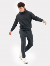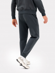 Стильные брюки из трикотажного футера с теплым подчесом. Силуэт зауженный, штанины с манжетами. Есть удобные боковые карманы. В поясе – эластичная тесьма и шнурок-затяжка. Просто, комфортно, актуально! _x000D_