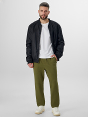 Брюки — универсальная модель для повседневной носки. Прямой крой с легким сужением к низу создает аккуратный силуэт, а эластичный пояс со шнурком позволяет точно регулировать посадку._x000D_ Брюки выполнены из прочного хлопкового материала с добавлением полиэстера и эластана — такая комбинация обеспечивает комфорт, сохраняет форму и не стесняет движений. Вы сможете носить их целый день, не думая о складках или дискомфорте.<br>_x000D_ <br>_x000D_ Модель легко сочетается с разными стилями: наденьте с футболкой и кроссовками для прогулки, с рубашкой поло — для встречи с друзьями, со свитшотом — для занятий спортом. Универсальный зеленый цвет дополняет как базовые, так и более яркие образы.<br>_x000D_ Эти брюки станут надежным выбором для активного дня: они практичны, не мнутся и подходят для разных ситуаций. Вам будет комфортно в офисе, на тренировке или на отдыхе — модель адаптируется под ваш ритм жизни._x000D_