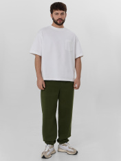 Мужские брюки прямого кроя — универсальная модель, которая особенно актуальна в осенне-зимний сезон. Свободный силуэт и эластичный пояс на кулиске обеспечивают комфортную посадку, которая легко регулируется под вашу фигуру. Брюки выполнены из мягкого футера с начесом, который эффективно сохраняет тепло в холодную погоду, оставаясь воздухопроницаемым.<br>_x000D_ Практичные детали делают модель идеальной для межсезонья: боковые карманы удобны для хранения перчаток или мелочей, а эластичная тесьма по низу штанин предотвращает задувание ветра. Декоративная строчка и накладной карман добавляют образу стильное завершение.<br>_x000D_ <br>_x000D_ Универсальный оттенок легко сочетается с худи, свитшотами или футболками. Эти брюки подойдут для прогулок, отдыха дома или неформальных встреч — — они станут надежной базой для создания многослойных луков в холодное время года. _x000D_