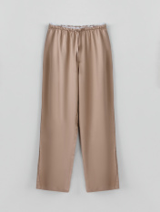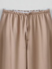 Брюки прямые свободные, посадка средня. Пояс цельнокроеный с эластичной тесьмой внутри (внутр. 20RV). С внешней стороны пояса пробиты петли и вставлен шнур-бейка из основного полотна. По верхнему срезу отделка из кружева 2.4см (L156-2.4, арт. JS00017-2.4). Брюки с боковыми швами. Нижние срезы обработаны швом вподгибку с закрытым срезом._x000D_