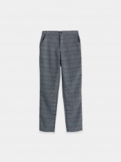 Брюки прямого силуэта. Посадка средняя. Пояс отрезной с регулировкой. По переду изделия карманы с отрезным бочком, застежка на молнию и пуговицу. На задних деталях вытачки. Низ изделия обработан швом в подгибку.