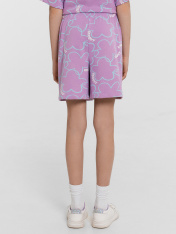 Стильный комплект для девочек. Выполнен из трикотажного футера. Состоит из футболки и шортов. Футболка свободного силуэта длиной до середины бедра, с короткими рукавами и круглой горловиной. Шорты длиной немного выше колен, с эластичной резиной в поясе и регулировочным шнуром. Прекрасный выбор!