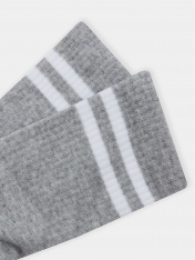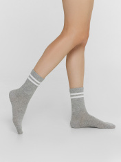 Высокие классические носки женские с плотной высокой резинкой и яркими контрастными полосками. Носки женские выполнены из высококачественного гребенного хлопка — тонкого, прочного и эластичного. Натуральные волокна отлично пропускают воздух и впитывают влагу, обеспечивают ощущение комфорта в течение дня. Благодаря небольшому количеству эластана в составе, носочки хорошо облегают и сохраняют форму, практичны и долговечны. Пятка и мысок дополнительно усилены для защиты от протирания при активном движении. Резинка мягко, но надежно удерживает носки, не передавливая ногу и не оставляя на коже следов. Отличный вариант на каждый день!