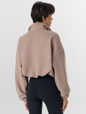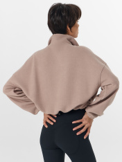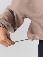 Свитшот из мягкого флиса подарит ощущение тепла и уюта в прохладные дни. Свободный силуэт со спущенным плечом и углубленной проймой обеспечивает комфорт и полную свободу движений._x000D_ Круглая горловина с воротником-стойкой и длинные рукава с манжетами на эластичной тесьме надежно защищают от холода. Короткая металлическая молния, расположенная от линии груди до горла, позволяет легко регулировать воротник и добавляет практичности. <br>_x000D_ <br>_x000D_ Особенностью модели является оригинальная отделка низа: по бокам ткань мягко присобрана на декоративную резинку с фиксаторами, создавая легкий драпированный эффект._x000D_ Свитшот выполнен из полиэстера с флисовой фактурой. Этот материал отличается легкостью, отличными теплосберегающими свойствами и способностью быстро отводить влагу, сохраняя тело сухим. Он приятен на ощупь, не мнется и сохраняет форму после стирки. <br>_x000D_ <br>_x000D_ Эта модель станет идеальным выбором для прогулок, занятий спортом на свежем воздухе или отдыха дома, легко сочетаясь с джинсами, леггинсами или спортивными брюками._x000D_