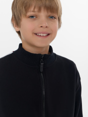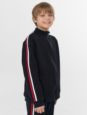 Горловина круглая с воротником стойкой из рибаны. Рукава втачные длинные по верху рукава настрочены лампасы из кулирки. По низу отрезные манжеты из рибаны. _x000D_ По переду обработана центральная застежка на молнию._x000D_ _x000D_