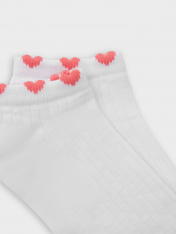 рис.3191 Детские укороченные носки выполненный перекидным переплетением (лапша), с пикотом в виде сердечек на бортике.