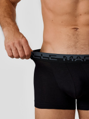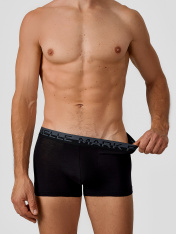 Мужские трусы-боксеры с широкой резинкой, украшенной жаккардовым логотипом бренда, — это стильный и практичный выбор для тех, кто ценит комфорт и качество. Продуманная конструкция модели обеспечивает оптимальную поддержку, идеальную посадку по фигуре и комфорт в течение всего дня, помогая сохранить свободу движений и удобство. Изделие выполнено из нежного, ультралёгкого и тонкого бамбукового материала с добавлением эластичных волокон. Бамбуковый материал славится своими уникальными свойствами: он гипоаллергенный, мягкий на ощупь и обладает отличной воздухопроницаемостью, что предотвращает раздражения и создает ощущение свежести. А эластичные волокна добавляют изделию прочность, гибкость и способность сохранять форму после длительного использования. Эти трусы-боксеры сочетают стиль, функциональность и инновационные материалы, предлагая современный подход к выбору нижнего белья. _x000D_ _x000D_