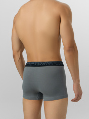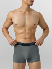 Мужские трусы-боксеры обеспечивают максимальный комфорт и удобную посадку благодаря продуманному дизайну. Облегающий крой без боковых швов дарит свободу движений, исключая лишнее трение и создавая ощущение легкости в течение дня. Модель выполнена изтрикотажной кулирки — мягкого, эластичного и воздухопроницаемого материала, который приятно прилегает к коже и сохраняет форму даже после многократных стирок. Верхний срез дополнен фирменной жаккардовой эластичной тесьмой с логотипом бренда, придающей стильный акцент и надежно фиксирующей изделие. Нижние срезы аккуратно обработаны швом вподгибку, что гарантирует долговечность и эстетичный вид. Эти боксеры — идеальный выбор для тех, кто ценит сочетание качества, удобства и современного дизайна внижнем белье. Отличный вариант для ежедневной носки, который гармонично объединяет практичность и стиль.