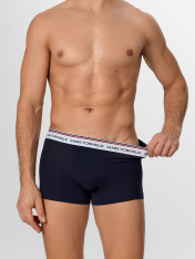 Мужские трусы-боксеры обеспечивают максимальный комфорт и удобную посадку благодаря продуманному дизайну. Облегающий крой без боковых швов дарит свободу движений, исключая лишнее трение и создавая ощущение легкости в течение дня. Модель выполнена изтрикотажной кулирки — мягкого, эластичного и воздухопроницаемого материала, который приятно прилегает к коже и сохраняет форму даже после многократных стирок. Верхний срез дополнен фирменной жаккардовой эластичной тесьмой с логотипом бренда, придающей стильный акцент и надежно фиксирующей изделие. Нижние срезы аккуратно обработаны швом вподгибку, что гарантирует долговечность и эстетичный вид. Эти боксеры — идеальный выбор для тех, кто ценит сочетание качества, удобства и современного дизайна внижнем белье. Отличный вариант для ежедневной носки, который гармонично объединяет практичность и стиль.