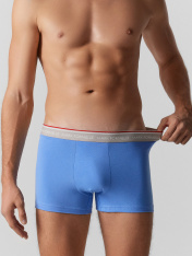 Мужские трусы-боксеры обеспечивают максимальный комфорт и удобную посадку благодаря продуманному дизайну. Облегающий крой без боковых швов дарит свободу движений, исключая лишнее трение и создавая ощущение легкости в течение дня. Модель выполнена изтрикотажной кулирки — мягкого, эластичного и воздухопроницаемого материала, который приятно прилегает к коже и сохраняет форму даже после многократных стирок. Верхний срез дополнен фирменной жаккардовой эластичной тесьмой с логотипом бренда, придающей стильный акцент и надежно фиксирующей изделие. Нижние срезы аккуратно обработаны швом вподгибку, что гарантирует долговечность и эстетичный вид. Эти боксеры — идеальный выбор для тех, кто ценит сочетание качества, удобства и современного дизайна внижнем белье. Отличный вариант для ежедневной носки, который гармонично объединяет практичность и стиль.