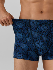 Черные трусы-боксеры мужские с узором — это эталон комфорта и качества. Модель выполнена из мягкого дышащего материала на основе хлопка с добавлением эластана, что обеспечивает идеальное облегание и свободу движений. Эластичный широкий пояс мягко сидит на талии, не оставляя следов, а плоские швы исключают натирание.<br>_x000D_ <br>_x000D_ Стильный узор добавляет образу современности, а продуманный крой с ластовицей и анатомической планкой гарантирует удобство в течение всего дня. Состав сохраняет форму и цвет даже после множества стирок._x000D_ Эти трусы-боксеры подходят для спорта, отдыха или повседневной носки. Если вы ищете, где купить мужское белье, которое сочетает натуральные материалы, безупречную посадку и долговечность, этот вариант станет отличнымвыбором.