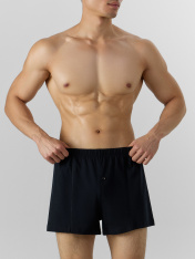 Трусы мужские из трикотажного полотна кулирного переплетения 100% хлопок, 140 г/м2, 180 см._x000D_ Перед с имитацией гульфика. Задняя деталь цельнокроеная. Модель без боковых швов.Передняя часть укреплена настрачной подкладкой из основного полотна. Пояс цельнокроеный (эл.тесьма 30 мм). Низ изделия обработан швом вподгибку,на плоскошовной машине.