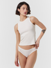 Хлопковые трусики-бразилиана из натурального, гипоаллергенного, дышащего полотна. Линия талии занижена. На верхнем срезе – тонкая эластичная тесьма, по ножкам – шов вподгибку. Почти не заметны под одеждой!