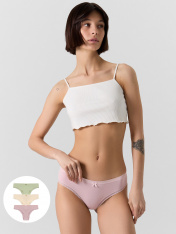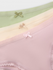 Стильный набор (мультипак) женских трусиков слипов (3 шт.) разных цветов из высококачественного хлопка — популярная модель женского белья. Невероятно удобные, благодаря своей невысокой посадке, они пользуются заслуженной любовью покупательниц. Изготовлены из натурального материала, дышащего, мягкого, гипоаллергенного - идеального для повседневной носки. По поясу и ножкам - нежная кружевная лента. Помимо длительного и полного ощущения комфорта, материал отличается долговечностью и сохраняет вид даже после многочисленных стирок. Цвет трусиков останется ярким, рисунок не поблекнет и долго будет радовать вас. Продуманная анатомическая конструкция, плоские швы и деликатные резиночки делают эту модель подходящей для спорта и на каждый день. Рекомендуем!