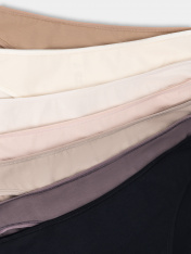 Набор из семи женских трусиков-слипов — это практичное и удобное решение для повседневного гардероба. Каждая пара выполнена из мягкой хлопковой ткани, которая обеспечивает комфорт, хорошую воздухопроницаемость и нежность на коже._x000D_ <br>Модель слип-бикини с заниженной линией талии создает универсальную посадку. Эластичная тесьма по верхнему срезу и ножкам обеспечивает мягкую фиксацию, не стягивая и не натирая. Простая и продуманная конструкция гарантирует идеальный комфорт в течение всего дня.<br>_x000D_ <br>_x000D_ Состав с преобладанием хлопка и добавлением эластана обеспечивает натуральность, гипоаллергенность и долговечность, сохраняя форму и цвет после множества стирок. _x000D_ <br>Этот набор станет надежной и неприхотливой основой вашего бельевого гардероба, сочетая в себе качество, практичность и повседневный комфорт для любой ситуации._x000D_ _x000D_
